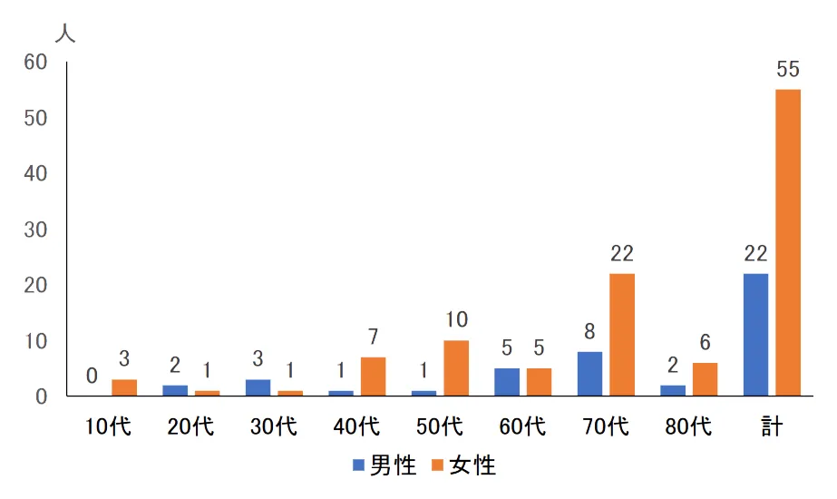 70代の女性が最も多い