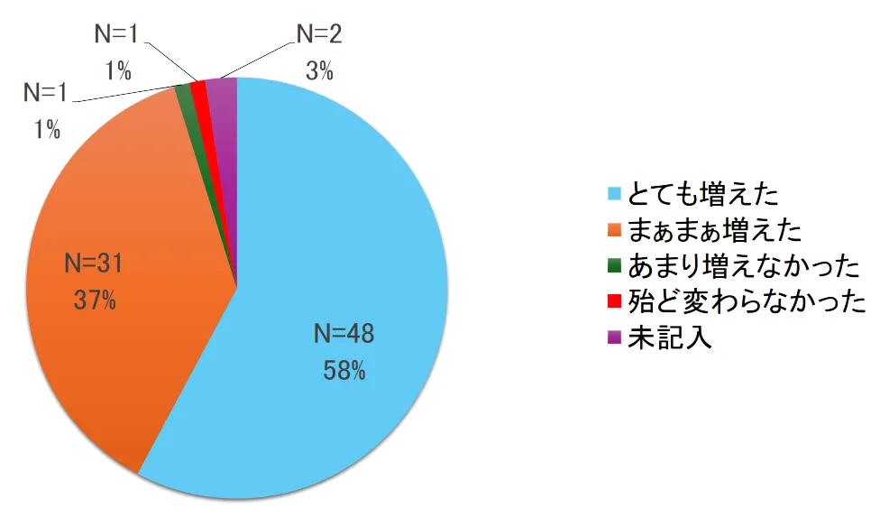 95%(58%+37%)の参加者が「知識が増えた」と回答