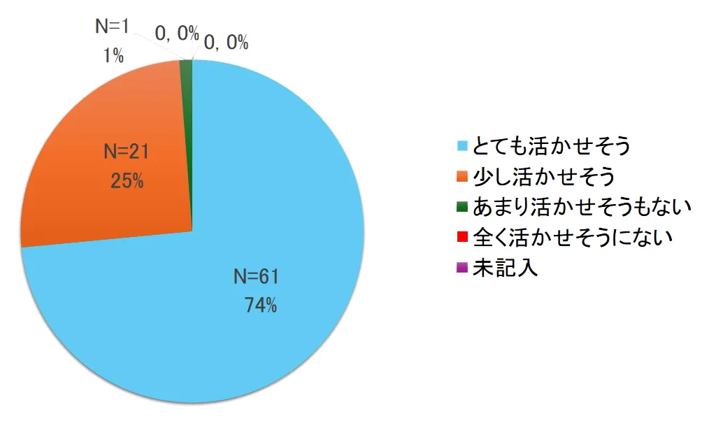 74%の参加者が今後の生活に活かせそうな内容と回答