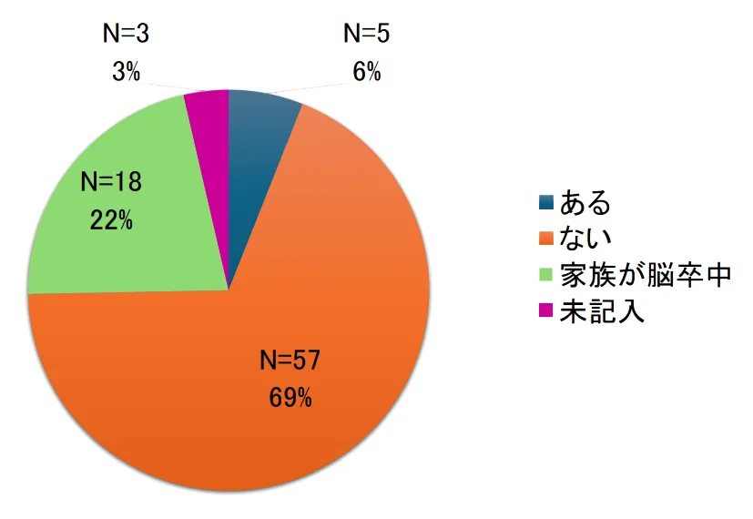脳卒中未経験者69% 脳卒中に関係した方は28%(6%+22%)