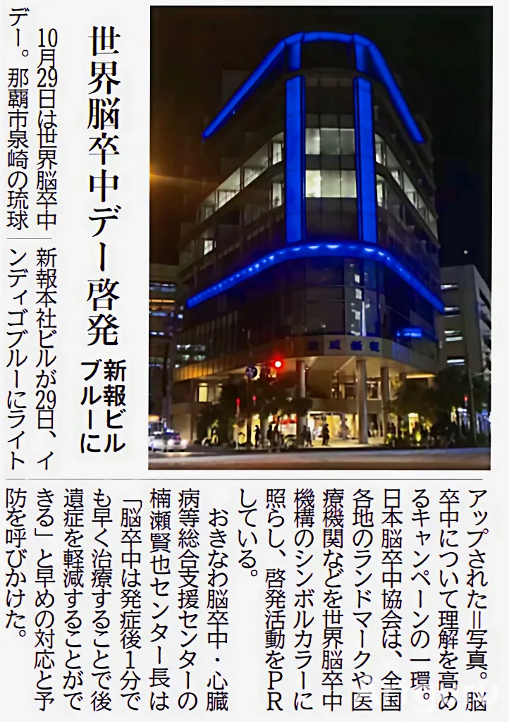 沖縄県は今年初参加。 琉球新報社ビルをライトアップしました(ライトアップの記事は10月30日の琉球新報朝刊に掲載されております)。